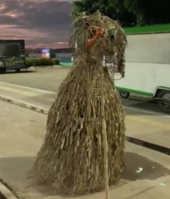 Nesta sexta-feira (13), em Itaituba, no sudoeste paraense, diversos vídeos viralizaram nas redes sociais ao mostrar uma pessoa com vestes de palha e chocalho andando pela orla do município. Nas filmagens, não dá para identificar quem está por trás da fantasia e qual a motivação para o ato. Entretanto, diversos internautas opinaram sobre o que poderia simbolizar a performance e relacionaram com o misticismo da data de hoje (13) e outros acontecimentos históricos. Confira: